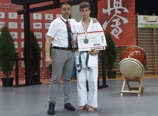 Zawodnik mieleńskiego Klubu Sztuk i Sportów Walki, Wojciech Formela został wicemistrzem Polski w wadze do 60 kg podczas mistrzostw kraju 14 -15 lat. Na zdjęciu Wojtek wraz ze swoim trenerem Cezarym Banasiakiem.