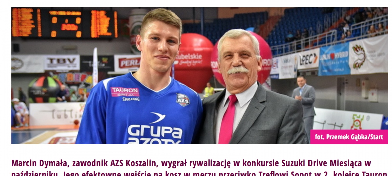 Dymała otrzymał upominki od firmy Suzuki. Na koniec rozgrywek, spośród siedmiu wyróżnionych za poszczególne miesiące, kibice wybiorą najlepsze wejście na kosz sezonu 2015/16. Zwycięzca otrzyma skuter marki Suzuki, a kibice przy okazji głosowania będą mogli wziąć udział w konkursie specjalnym.