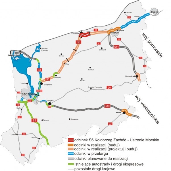 Tym samym dla wszystkich odcinków drogi ekspresowej S6 pomiędzy Goleniowem, a Nowogardem o łącznej długości niemal 120 km zostały złożone wnioski o wydanie decyzji ZRID. Dla odcinków Goleniów – Nowogard i Kiełpino – Kołobrzeg Zachód Zachodniopomorski Urząd Wojewódzki w Szczecinie wszczął już postępowania w sprawie wydania decyzji ZRID. Ostatnie decyzje administracyjne poprzedzające budowę drogi powinny zostać uzyskane na przełomie 2016/2017 roku, roboty budowlane ruszą w marcu 2017, a drogą S6 od Goleniowa do Koszalina powinniśmy pojechać w 2019 roku.