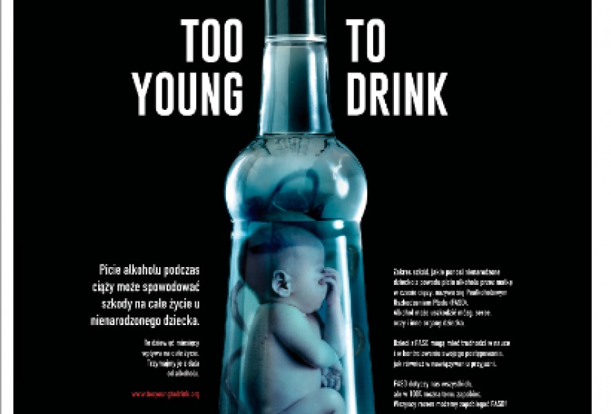 Hasło kampanii „Too Young To Drink” umieszczane jest na plakatach we wszystkich krajach uczestniczących w akcji. W ubiegłorocznej edycji wzięło udział ponad 60 organizacji z 30 krajów świata, w tym Pomorze Zachodnie. W ramach regionalnej akcji do zachodniopomorskich starostw powiatowych oraz szpitali Samorządu Województwa rozesłano 500 plakatów informujących, że picie alkoholu podczas ciąży może spowodować uszkodzenie mózgu, serca oraz innych organów dziecka. Dzieci dotknięte Alkoholowym Zespołem Płodowym często rodzą się z niską masą urodzeniową oraz dysfunkcją ośrodkowego układu nerwowego. Pomóc może im szybka diagnoza i odpowiednia rehabilitacja. Trzeba jednak pamiętać, że uszkodzenia spowodowane alkoholem są trwałe, nie można ich całkowicie wyleczyć.