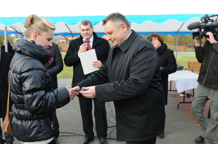 Dziś na osiedlu Unii Europejskiej przy ul. Brytyjskiej zostały wręczone klucze nowym mieszkańcom. Oprócz nowych lokatorów w uroczystości uczestniczyli m.in. minister Stanisław Gawłowski, prezydent Piotr Jedliński, przewodniczący Rady Miejskiej Stefan Turowski oraz wykonawcy PBO Flens i zaprzyjaźnione firmy.