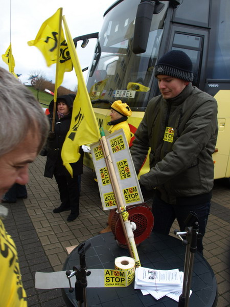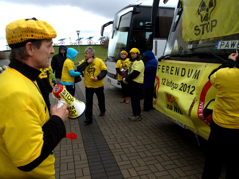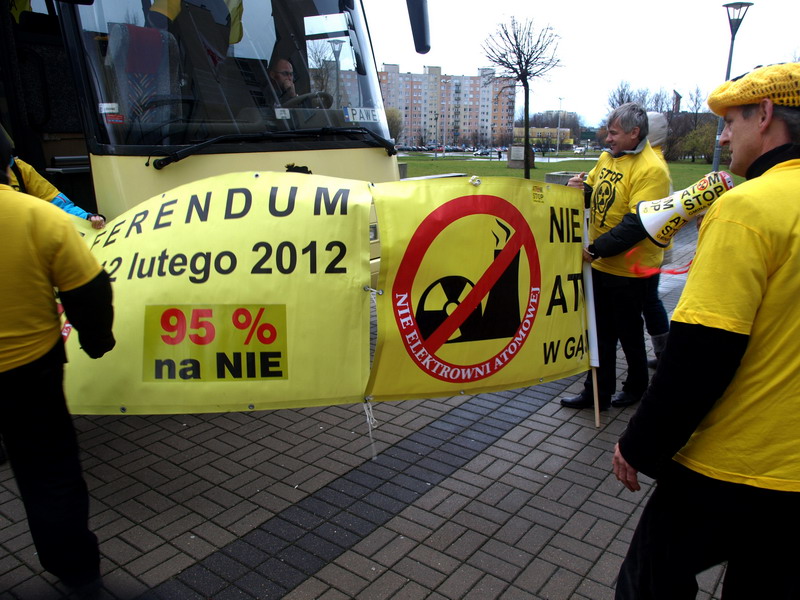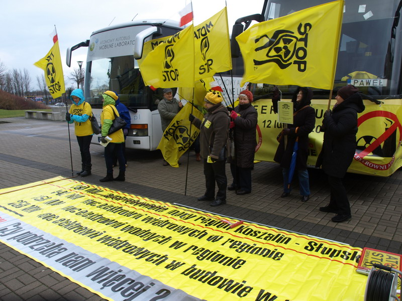 Przyjazd autobusu, nie pozostał bez echa, wśród przeciwników elektrowni jądrowej, która miałaby, zostać wybudowana nadmorskich Gąskach.