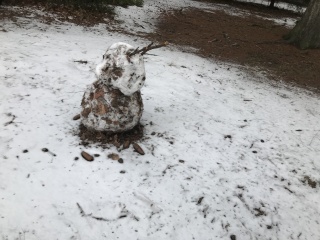Tegoroczna zima jest łagodna, a śniegu jak na lekarstwo. Mimo to znaleźli się tacy, którzy ulepili bałwana.
