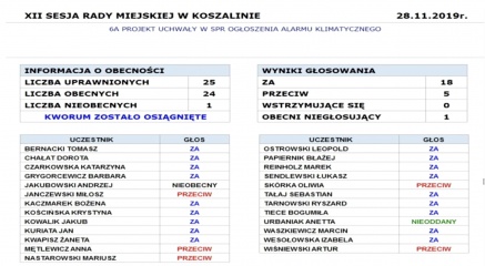Wydawać by się mogło, że ochrona klimatu, przyrody, środowiska nie powinna dzielić. I choć wszyscy radni Rady Miejskiej w Koszalinie opowiadali się za troską o te wartości, to jednak względy polityczne spowodowały dość ostrą dyskusję. Doszło nawet do "osobistych wycieczek". - A ja jestem za apelem do apelu i by ta kartka z apelem nie została w biurku urzędników proponuję, by na przykład lekcji katechezy został on odczytany - mówiła radna Kościńska. - Nie mam z tym żadnych trudności - ripostował Artur Wiśniewski, przewodniczący klubu radnych PiS. - Na moich lekcjach katechezy często nawiązuje do Księgi Rodzaju, czy też św. Franciszka oraz świętego Jana Pawła II - dodał radny Wiśniewski. W sukurs partyjnemu koledze poszła Anna Mętlewicz, która powiedziała: Ja też mam kota. Prawie jak prezes. Chcę powiedzieć, że edukacja ekologiczna jest już prowadzona w szkołach, co potwierdzić może prezes PGK Koszalin Tomasz Uciński, a takie apele na nic się zdadzą - stwierdził. Ostatecznie uchwała w sprawie Ogłoszenia Alarmu Klimatycznego została przyjęta.