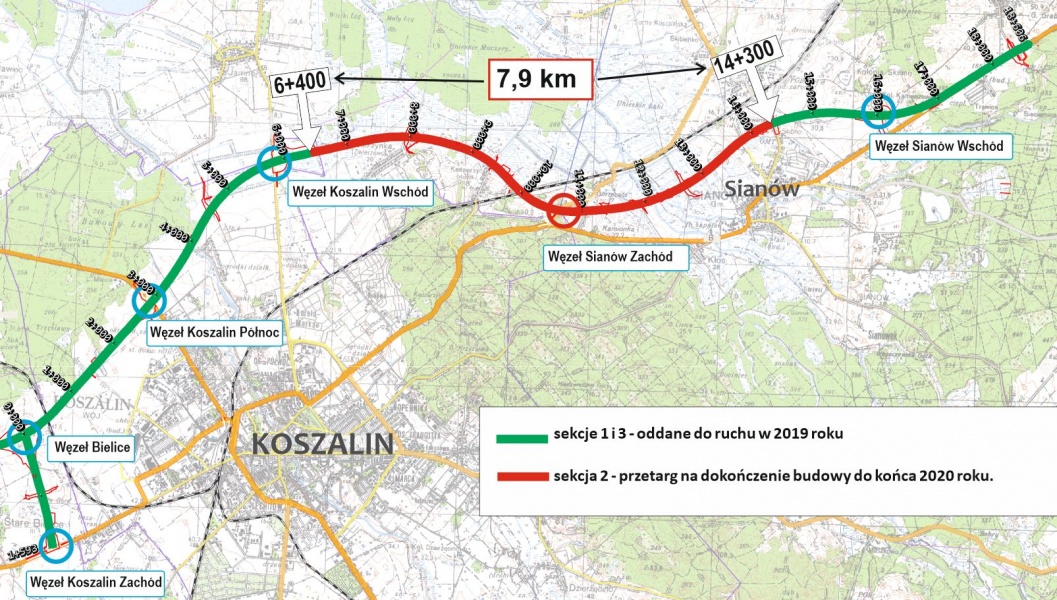 Obwodnica Koszalina i Sianowa w ciągu drogi ekspresowej S6 ma łączną długość 21,1 km. Od jesieni ubiegłego roku funkcjonują odcinki o łącznej długości około 13 km, od węzła Bielice do węzła Koszalin Wschód, połączenie z ulicą Szczecińską (S11) oraz końcowy fragment obwodnicy od węzła Sianów Wschód. Rozprowadzają one ruch z nowej drogi S6, jednak nie dają możliwości ominięcia Koszalina i Sianowa przez ruch tranzytowy. Dlatego konieczne jest dokończenie całości obwodnicy.