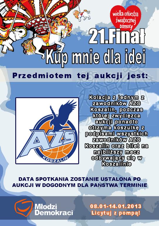 Kupić można obiad bądź spotkanie z: prezydentem Piotrem Jedlińskim, senatorami Grażyną Anna Sztark i Piotrem Zientarskim, posłem Stanisławem Gawłowskim, wicemarszałkiem województwa zachodniopomorskiego Andrzejem Jakubowskim, wybranym koszykarzem AZS Koszalin oraz Aleksandrą Kobyłecką, rozgrywającą, zawodniczką Klubu Uczelnianego AZS Politechnika Koszalińska.