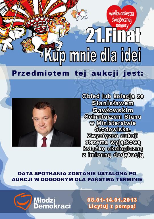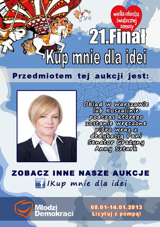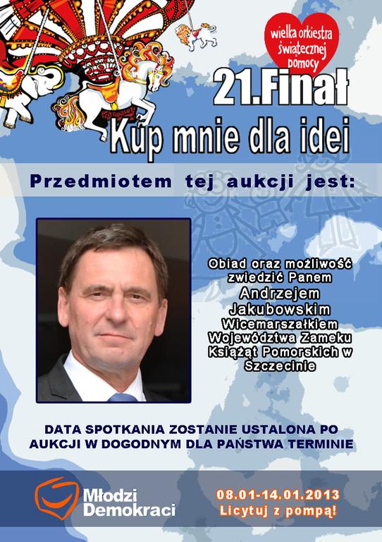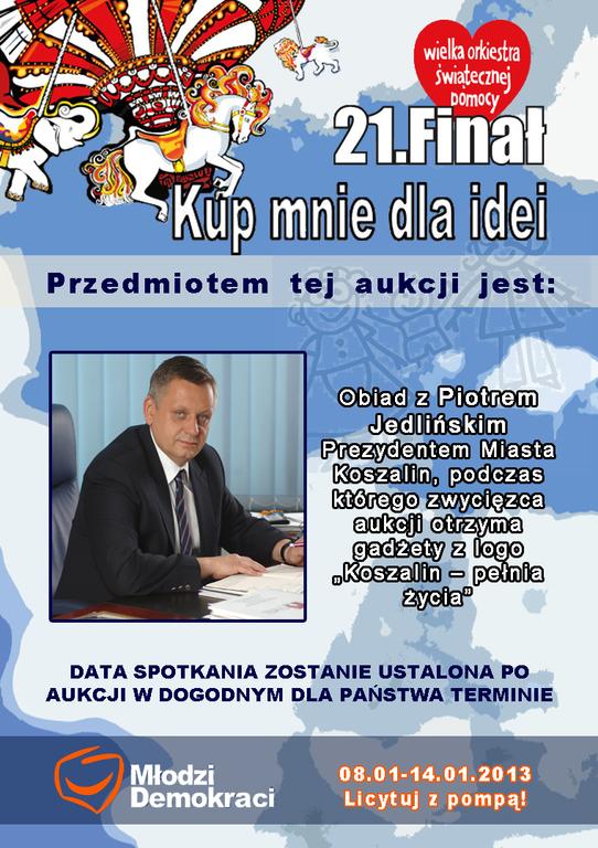 Na ciekawy pomysł wsparcia 21 Finał Wielkiej Orkiestry Świątecznej Pomocy wpadli Młodzi Demokraci z Koszalina. Na Allegro wylicytować można kolację lub obiad z kimś znanym.