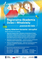 Regionalna Akademia Dzieci i Młodzieży to nowe działanie ROPS Urzędu Marszałkowskiego Województwa Zachodniopomorskiego (lider projektu) realizowanego wspólnie z ośmioma powiatami. 80 procent zaplanowanych zadań w projekcie dotyczyć ma wsparcia kierowanego do dzieci i młodzieży, które na co dzień mierzą się z trudnymi sytuacjami życiowymi. Może to być np. rozpad rodziny, przemoc w szkole, hejt w Internecie itp. Młodzi ludzie nie zawsze mogą liczyć na wystarczające wsparcie swoich opiekunów, nie zawsze też wiedzą, gdzie zwrócić się o pomoc. Akademia ma uzupełnić tę lukę. Dzięki niej dzieci i młodzież będą uczyć się krytycznego myślenia, budować poczucie własnej wartości, przygotowywać się do pracy w grupie.