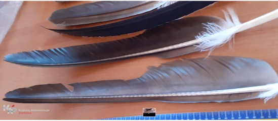Okazało się, że zawiera ona kilka ptasich piór o długości kilkudziesięciu centymetrów. Koordynator ds. CITES z KAS (ochrona roślin i zwierząt zagrożonych wyginięciem) potwierdził, że są to pióra ptaków drapieżnych i należą do: sępa płowego (Gyps fulvus), orłosępa brodatego (Gypaetus barbatus) i kondora wielkiego (Vultur gryphus). Wszystkie te gatunki są wpisane na listę gatunków CITES najbardziej zagrożonych wyginięciem (grupa A).
