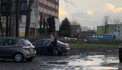 Codzienne trudności z parkowaniem przed dużą Szkoła Podstawową nr 6, która znajduje się przy ul. Gnieźnieńskiej (w pobliżu Ronda Solidarności") zmusiły rodziców do szukania możliwości zatrzymania pojazdu i wysadzenia swoich pociech. Znakomicie do tego celu nadawał się teren zielony znajdujący się w pobliżu szkoły. Niestety deszczowa zima zrobiła swoje i zamieniła to miejsce w kałuże, błoto i grzęzawisko. Korzystanie z tego "parkingu" stało się mocno utrudnione, a do tego fakt zniszczenia trawnika nie spodobał się