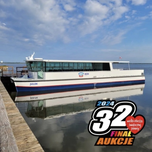 "Julek" to statek pasażerski z napędem hybrydowym, który łącznie na podkład może zabrać 110 pasażerów, to jedyny taki statek na Pomorzu Zachodnim! Rejs po jeziorze Jamno z niezwykłą załogą to nie tylko ciekawa przygoda, ale także niezapomniane widoki. Na statku podczas rejsu można zorganizować spotkanie towarzyskie, ważne wydarzenie życiowe, czy też sesję zdjęciową. Niech poniesie Was wyobraźnia! To niepowtarzalna okazja, aby spędzić wyjątkowy dzień, a przy okazji wesprzeć szczytny cel Wielkiej Orkiestry Świątecznej Pomocy. Realizacja rejsu możliwa w sezonie letnim, w okresie pływania statku. Czas trwania rejsu to maksymalnie 3 godziny.