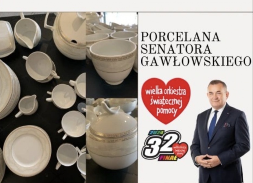 Przedmiotem licytacji jest "zaaresztowana" porcelana Senatora Stanisława Gawłowskiego. Senator Stanisław Gawłowski odzyskał swoją porcelanę na początku 2023 roku. Na Twitterze pisał: "W piątek odbędzie się powrót moich talerzy z niewoli, po pięciu latach odzyskam swoją własność". W skład zastawy wchodzą: