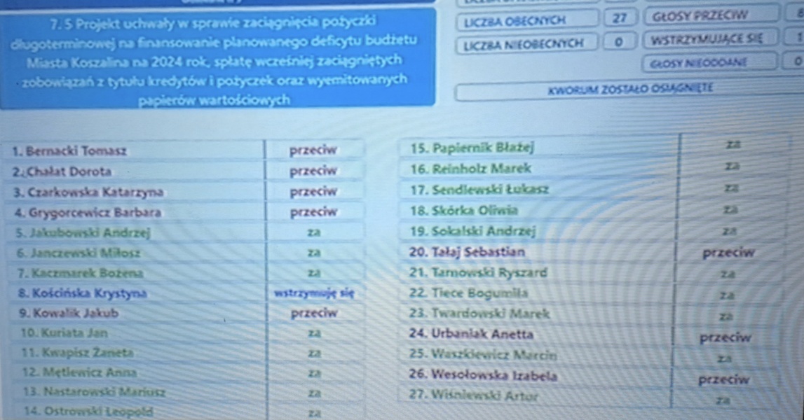 Podczas 72. sesji Rady Miejskiej w Koszalinie podjęto m.in. uchwałę pozwalającą na zaciągnięcie 50 milionowego kredytu. - Środki te zabezpieczą niezbędne wydatki miasta. Przeznaczone będą na spłaty deficytu budżetowego i zaciągniętych wcześniej zobowiązań - argumentowała Katarzyna Macko, skarbnik Koszalina.