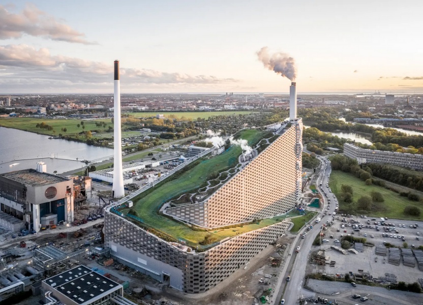 Integracją przemysłu z przestrzenią publiczną – dach elektrociepłowni służy jako stok narciarski, teren rekreacyjny i ściana wspinaczkowa.