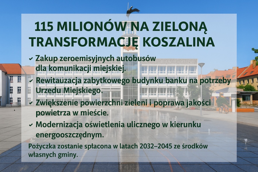 Równolegle z aktualizacją budżetu, Rada rozpatrzy projekt uchwały o zaciągnięciu długoterminowej pożyczki w wysokości 115 mln zł, która w latach 2026–2030 ma zostać przeznaczona na realizację strategicznych, proekologicznych inwestycji. Wśród kluczowych zadań znalazły się: