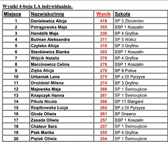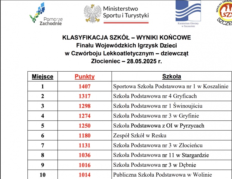 Drużyna dziewcząt zajęła pierwsze miejsce w klasyfikacji drużynowej, pokazując, że wspólne działanie przynosi znakomite efekty. Każda z zawodniczek wniosła ogromny wkład w ten sukces.