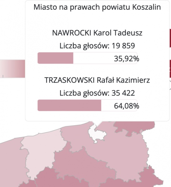 Powiat koszaliński: przewaga Trzaskowskiego, ale mniejsza