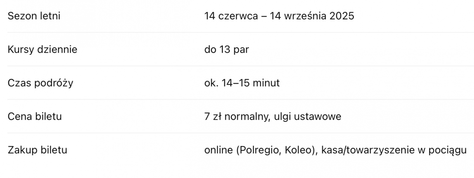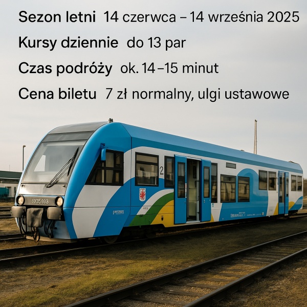 Szynobus kursuje w sezonie letnim od 14 czerwca do 14 września 2025 – łącznie do 13 par kursów dziennie