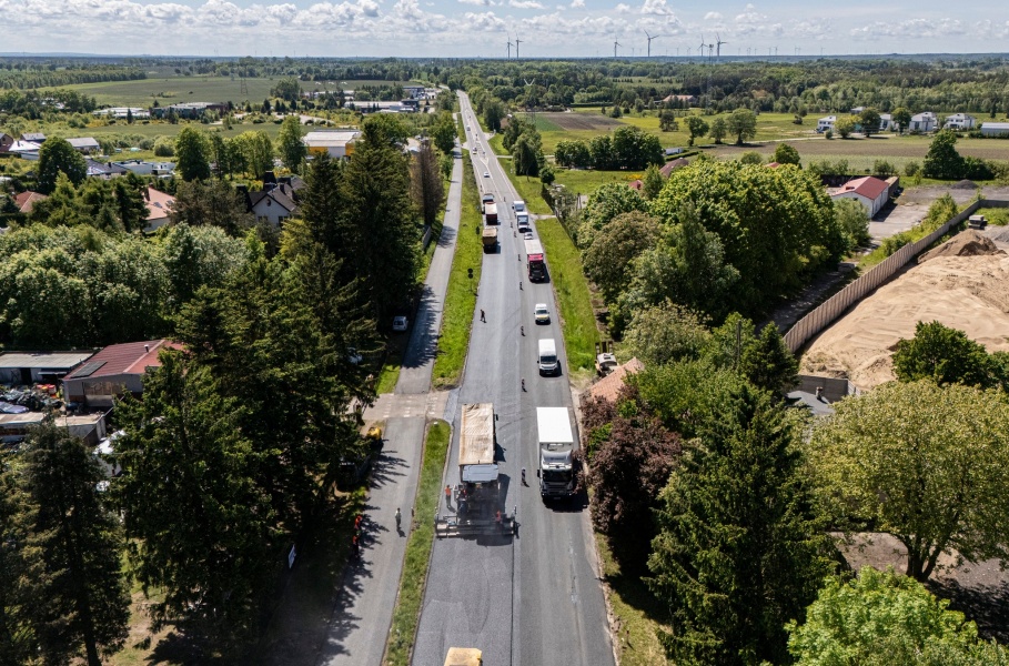 Zakres prac obejmuje m.in.: rozbiórkę zużytej nawierzchni bitumicznej na głównej jezdni, naprawę nawierzchni na odcinku ciągu pieszo-rowerowego, demontaż starych azyli dla pieszych i oznakowania, budowę nowych warstw konstrukcyjnych drogi, montaż nowego oznakowania poziomego i pionowego. Prace budowlane mają zakończyć się w czerwcu tego roku.