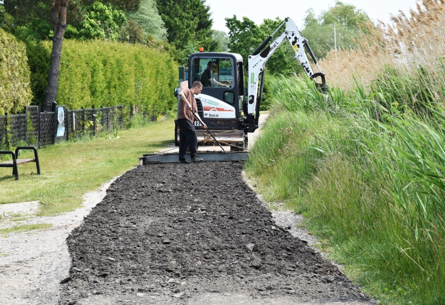 Równolegle prowadzone są prace naprawcze na innym popularnym fragmencie szlaku – między Urzędem Miejskim a przystanią statku „Julek”. Ekipy zajmują się tam usuwaniem ubytków i poprawą nawierzchni, aby poprawić bezpieczeństwo i komfort użytkowników.