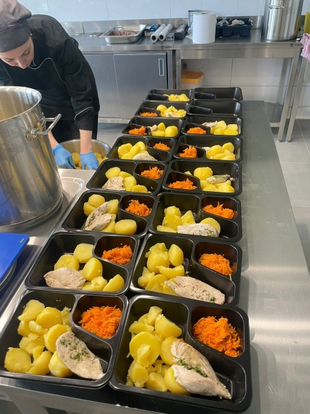 Pierwszy obiad, przygotowany przez panią Hanię – szefową kuchni Caritas – składał się z zupy buraczkowej, piersi z kurczaka, ziemniaków i surówki z marchewki. Posiłki trafiają do beneficjentów w bezpiecznych, świeżych warunkach, a odbiorcy są informowani o zasadach ich przechowywania i spożycia.