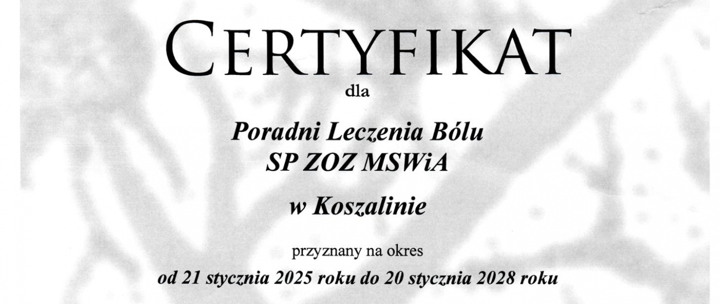 To prestiżowe wyróżnienie jest potwierdzeniem, że poradnia spełnia najwyższe standardy w zakresie diagnostyki i terapii bólu, zgodnie z aktualnymi wytycznymi i najnowszymi osiągnięciami medycyny. Certyfikat PTBB przyznawany jest placówkom, które wyróżniają się profesjonalizmem, jakością świadczonych usług oraz zaangażowaniem w zapewnienie Pacjentom kompleksowej, skutecznej i empatycznej opieki.