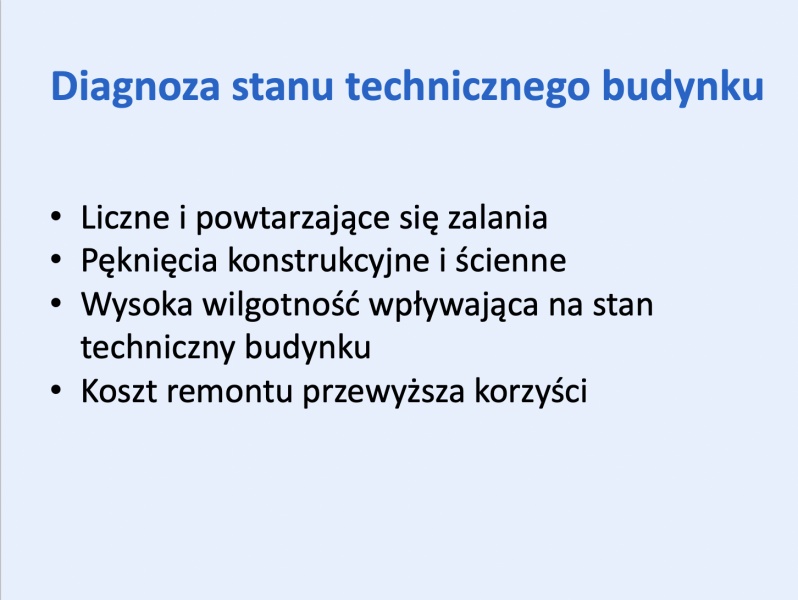 Jak podkreślają przedstawiciele samorządu, główną motywacją do zmiany lokalizacji przedszkola była ekspertyza techniczna, która wykazała, że dotychczasowy budynek nie spełnia podstawowych standardów bezpieczeństwa. W szczególności zwrócono uwagę na zniszczony dach, obecność wilgoci, grzyba i pleśni, które stanowią poważne zagrożenie dla zdrowia zarówno dzieci, jak i pracowników placówki.