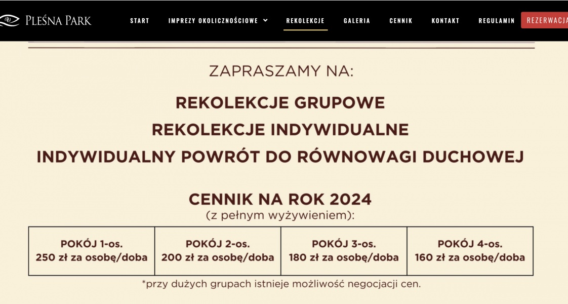 Ośrodek "Pleśna Park", należący do diecezji koszalińsko-kołobrzeskiej, to nadmorski ośrodek rekolekcyjny z pełną infrastrukturą hotelową. Ich wygląd, standard i oferta nie odbiegają od prywatnych inwestycji hotelarskich – a pozostają w rękach kościelnych instytucji. W większości przypadków podmioty kościelne osiągają z tych obiektów zyski – czy to poprzez samodzielne prowadzenie działalności, czy wynajem nieruchomości komercyjnym operatorom.