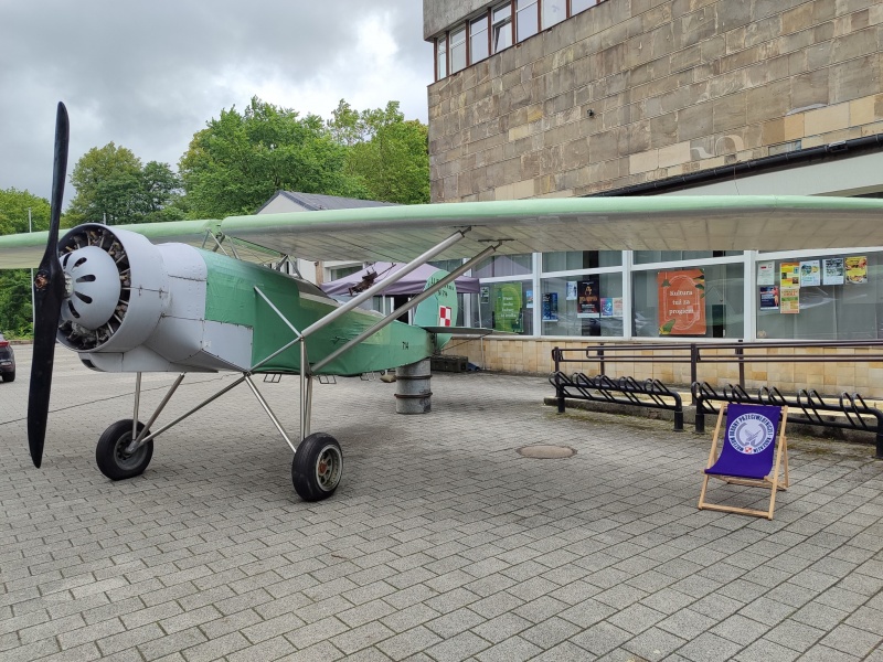 W środku biblioteki czeka stanowisko edukacyjne i promocyjne, które zaprasza do rozmów, odkrywania ciekawostek i bliższego poznania lotniczych tradycji. Uczestnicy mogą także odwiedzić mobilną księgarnię Instytutu Pamięci Narodowej, gdzie znajdą wyjątkowe publikacje i materiały poświęcone historii Polski.
