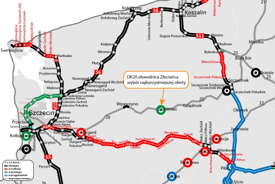 Obecnie trwa proces uzyskiwania decyzji ZRID dla obwodnic Stargardu (DK20), Wałcza i Rusinowa (obie na DK22). W przygotowaniu są również obwodnice Kołbaskowa (DK13) i Człopy (DK22).