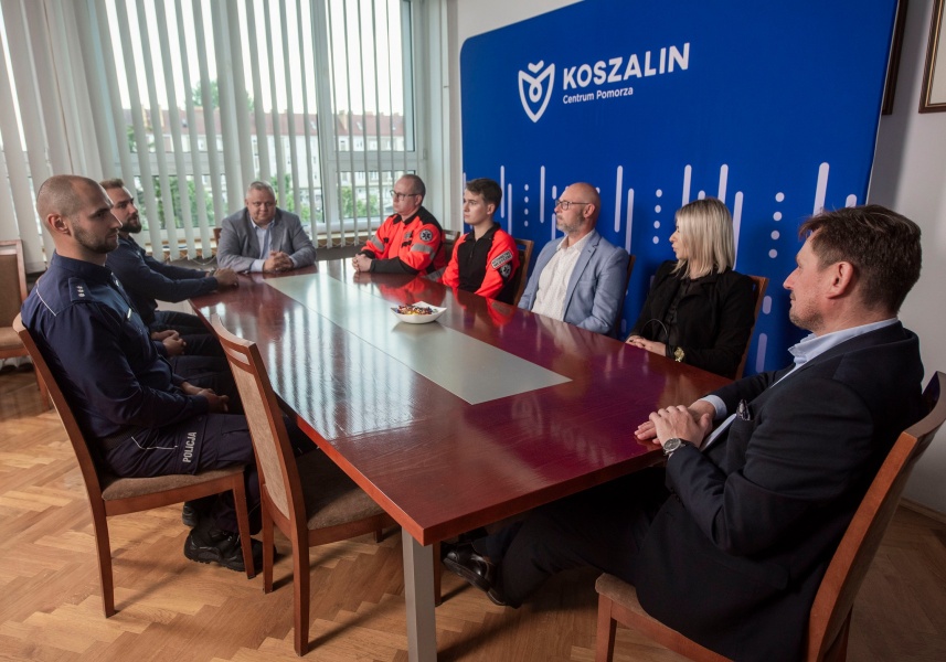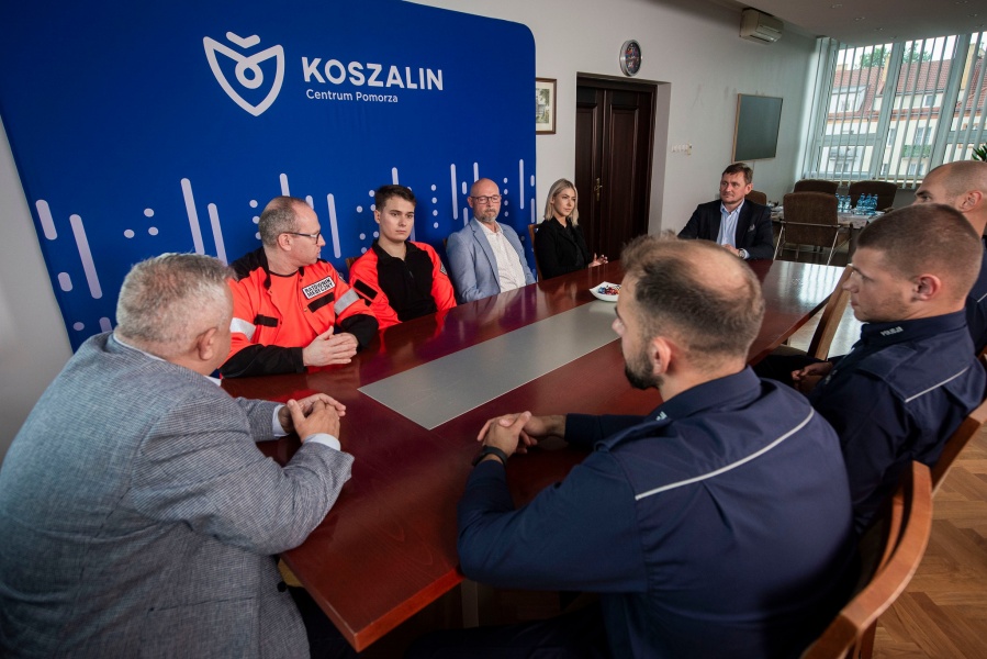 Dziś prezydent Koszalina Tomasz Sobieraj spotkał się z uczestnikami akcji, by osobiście podziękować im za odwagę, opanowanie i gotowość do działania.