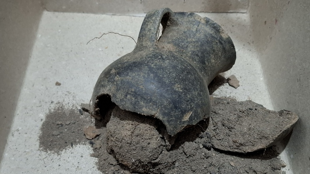 Niezwykle interesującym znaleziskiem jest również świetnie zachowany ceramiczny dzban. Choć cmentarzysko pochodzi z epoki kultury łużyckiej, to dzbanek – wraz z popielnicą – został tu najprawdopodobniej wkopany około 500 roku p.n.e. przez ludność kultury pomorskiej. Obiekty zostały zabezpieczone i przewiezione do dalszych badań w Muzeum w Koszalinie.