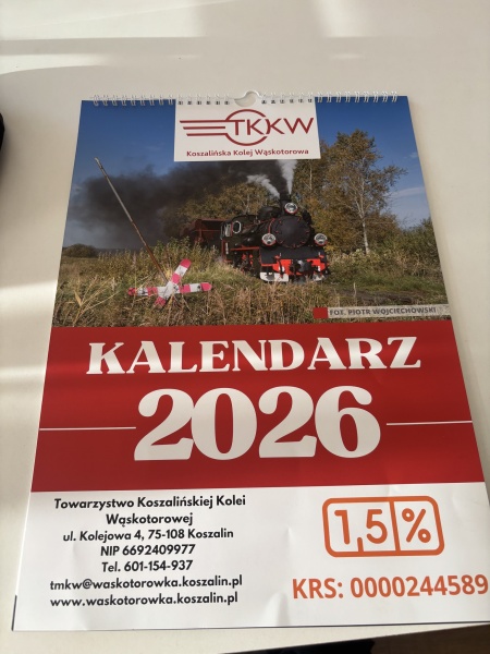 W kasie biletowej można nabyć już kalendarze na rok 2026 zawierające zarówno aktualne, jak i historyczne fotografie kolejki. Dostępne są również nowe pamiątki związane z kolejką, które z pewnością zainteresują kolekcjonerów i turystów.