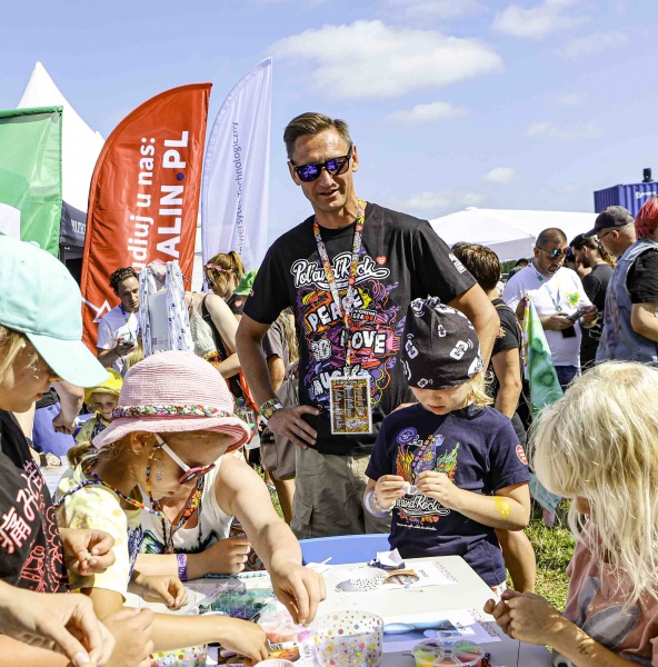 Wolontariusze Pokojowego Patrolu czuwają nad bezpieczeństwem uczestników – rozpoznasz ich po czerwonych koszulkach. Dzięki ich zaangażowaniu oraz przestrzeganiu zasad, festiwal uchodzi za jedno z najbezpieczniejszych masowych wydarzeń w Polsce. Choć Pol’and’Rock to ogromny festiwal rockowy pod gołym niebem, dzieci są tu mile widzianymi gośćmi. Wiele osób przyjeżdża całymi rodzinami, chcąc zaszczepić pociechom ducha festiwalu i wartości, jakie ze sobą niesie. Organizatorzy przygotowali specjalne udogodnienia dla rodzin z dziećmi, aby zapewnić im komfort i bezpieczeństwo. Przede wszystkim na wydzielonym płatnym polu Family Camp dostępna jest rodzinna strefa namiotowa – spokojniejsza, strzeżona i wyposażona w dodatkowe atrakcje dla najmłodszych. Na Family Camp czeka plac zabaw i zabawy dla dzieci, tak by maluchy również miały swoje miejsce do rozładowania energii. Rodzice mogą tam liczyć na nieco ciszy w nocy i lepsze zaplecze sanitarne, co bywa bezcenne podczas biwakowania z dzieckiem. Bezpieczeństwo najmłodszych to absolutny priorytet. Tuż po przyjeździe warto skorzystać z darmowych opasek identyfikacyjnych dla dzieci – organizatorzy rozdają białe opaski na rękę, na których opiekun może wpisać swój numer telefonu
