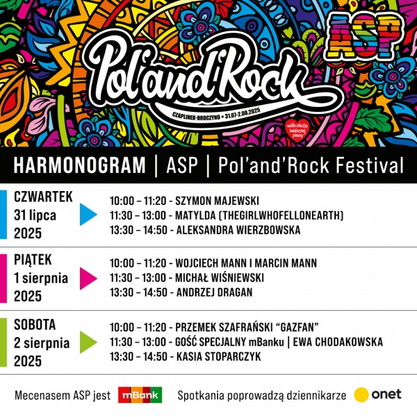 Jednym z najważniejszych elementów Pol’and’Rock, poza koncertami, jest Akademia Sztuk Przepięknych (ASP) – wyjątkowa przestrzeń spotkań i dialogu. To duży namiot (a właściwie amfiteatr pod płótnem), w którym każdego dnia festiwalu odbywają się inspirujące wykłady, warsztaty i panele dyskusyjne z udziałem wybitnych gości. ASP powstała z myślą, by w atmosferze rockowego święta znalazło się miejsce na chwilę refleksji, głębszą rozmowę i mądrą dyskusję o ważnych sprawach. Jak przypominają organizatorzy, na scenie ASP przez lata zasiadali m.in. były prezydent Lech Wałęsa, premier Tadeusz Mazowiecki, ekonomista Leszek Balcerowicz, czołowi dziennikarze jak Monika Olejnik czy Tomasz Sekielski, a także artyści i pisarze pokroju Doroty Masłowskiej czy Jerzego Bralczyka
