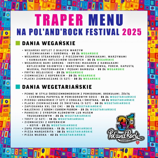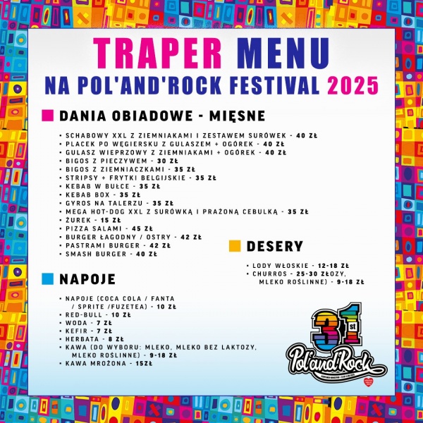 Słowem – gastronomia na Pol’and’Rock 2025 będzie różnorodna i dostępna o każdej porze. Niezależnie, czy ktoś preferuje suty obiad mięsny, zdrową miskę warzyw, czy szybki fast-food w biegu między koncertami – na pewno znajdzie coś pysznego dla siebie