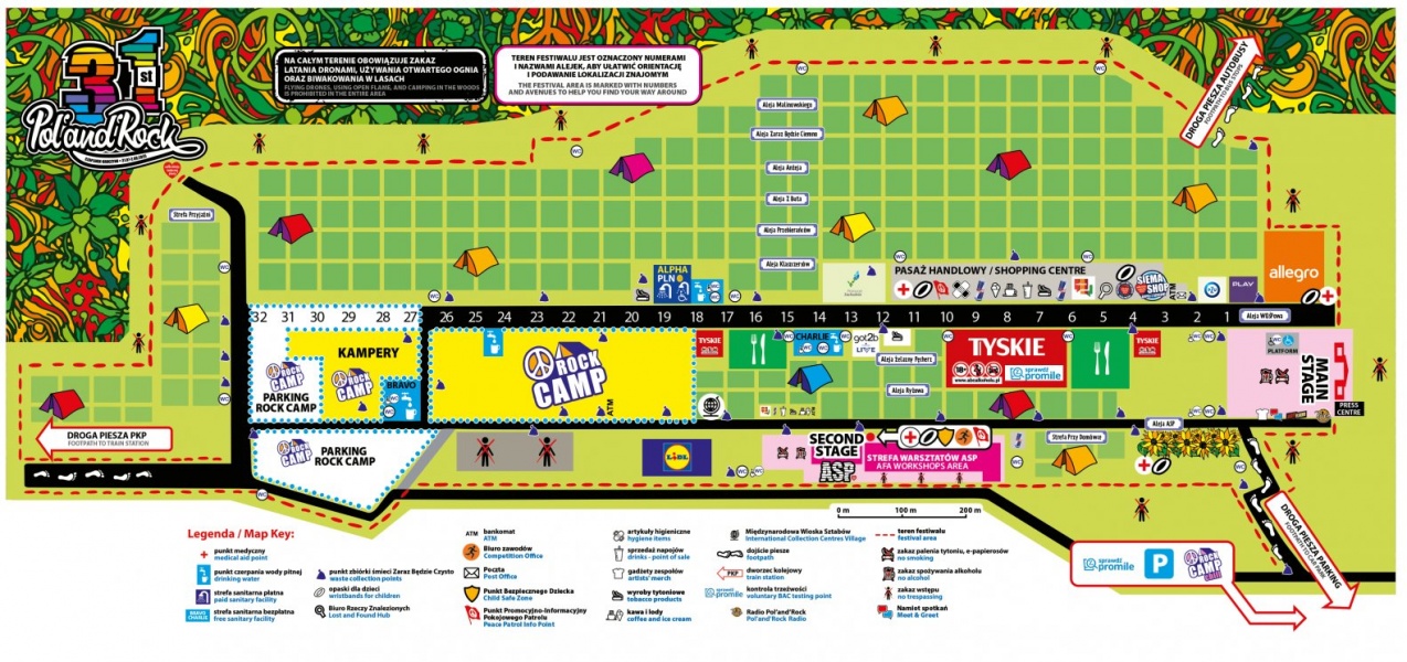 . Wszystko to razem sprawia, że teren festiwalu działa jak dobrze naoliwione miasteczko. Znajdziemy tu informację turystyczną, punkty bankomatowe, a nawet Pocztę Polową (Poczta Polska wystawia stoisko, gdzie można wysłać okolicznościową kartkę z festiwalu do bliskich)