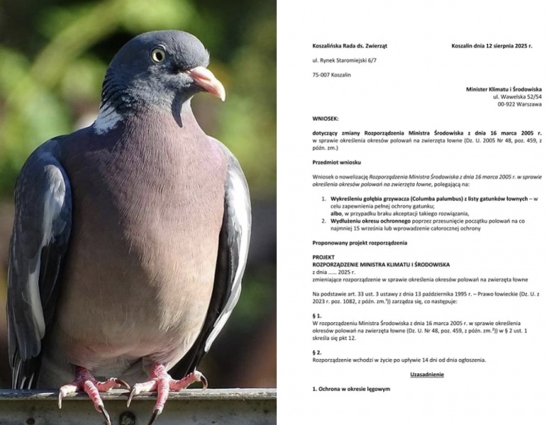 Całkowite wykreślenie gołębia grzywacza (Columba palumbus) z listy gatunków łownych, co zapewniłoby gatunkowi pełną ochronę.