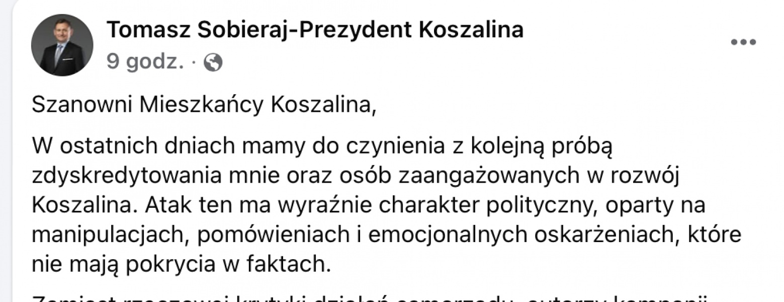 Najpierw prezydent Tomasz Sobieraj, który w specjalnym oświadczeniu przypomina, że ataki na jego osobę i samorząd to czysta polityczna insynuacja, oparta na pomówieniach i emocjonalnych zarzutach, pozbawionych cienia faktów. W jego słowach pobrzmiewa jednak sporo determinacji: "zamiast merytorycznej rozmowy dostajemy pokaz personalnych ataków".