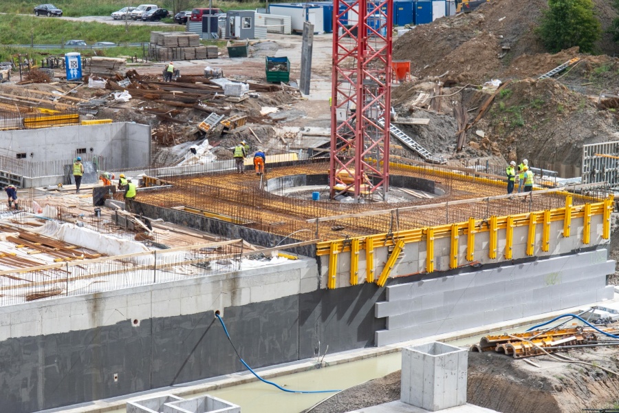 Wykonawca podjął już również decyzję dotyczącą estetyki budynku – część elewacji zostanie wykonana z betonu pigmentowanego na kolor rdzawy, kontrastujący z naturalną szarością betonu architektonicznego.
