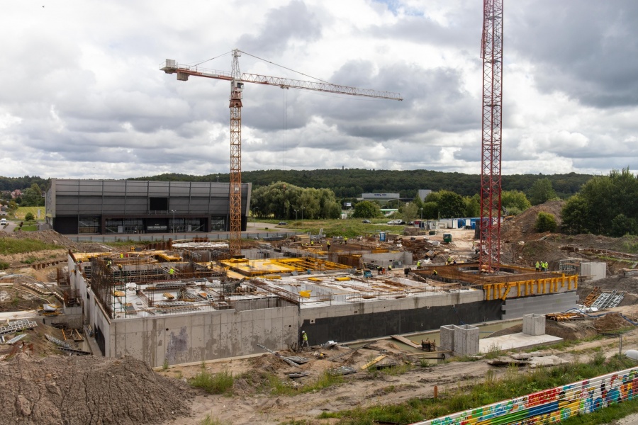 Na terenie budowy powstały już najważniejsze elementy konstrukcyjne, które w przyszłości będą stanowić podstawę całego kompleksu. Choć Cognitarium nadal pozostaje placem budowy, to już teraz staje się miejscem edukacji – studenci Politechniki Koszalińskiej mają możliwość poznawania procesu inwestycyjnego od środka.