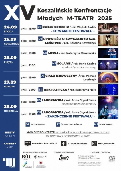 ℹ️ Po spektaklach konkursowych zaplanowano rozmowy z twórcami w foyer w ramach cyklu M-GADUGADU-TEATR.