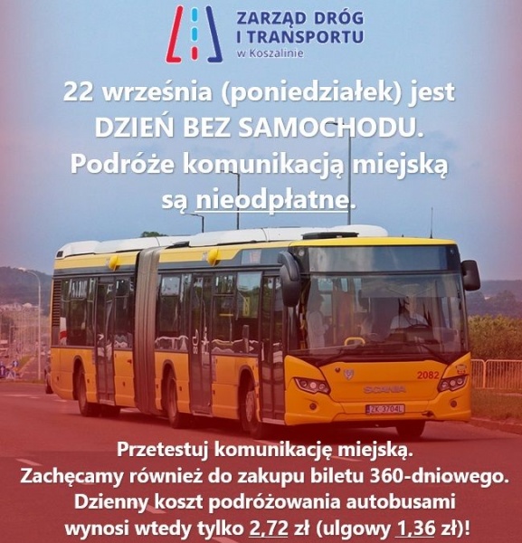 Organizatorzy akcji zachęcają, aby przetestować komunikację miejską – sprawdzić wygodę i dostępność połączeń, a także korzyści płynące z wyboru transportu zbiorowego. To doskonała okazja, by choć na jeden dzień zostawić samochód w garażu i przekonać się, że autobus może być szybkim i praktycznym środkiem codziennego przemieszczania się po Koszalinie.