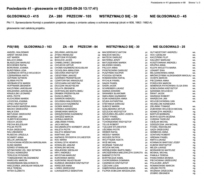 Posłowie Prawa i Sprawiedliwości oraz Konfederacji głosowali przeciw. Przeciw podstawowym standardom cywilizowanego świata. Przeciw uznaniu, że zwierzę to nie rzecz. Przeciw prawu do życia wolnego od cierpienia.