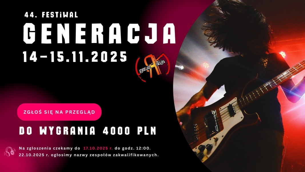 Koszalin znów zadrży od dźwięków gitar, a Generacja po raz 44. przypomni, czym jest prawdziwa energia sceny.