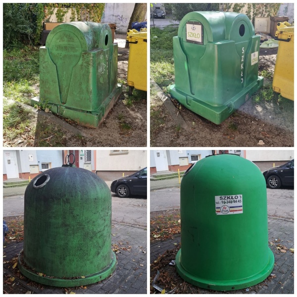 PGK dba również o estetykę pojemników na odpady. Tym razem umyto pojemniki typu „dzwon” na szkło przy ul. Matejki 23 i Andersa 1–7. Efekty? – „Różnicę widać gołym okiem – pojemniki odzyskały kolor, a okolica świeżość!” – podkreśla prezydent Sobieraj.
