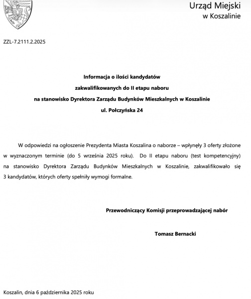 Jak poinformowała rzecznik ratusza Anna Makarewicz, w odpowiedzi na ogłoszenie o naborze wpłynęły trzy oferty. Wszystkie spełniły wymogi formalne i kandydaci zakwalifikowali się do drugiego etapu – testu kompetencyjnego, który ma ocenić ich wiedzę i umiejętności zarządcze.