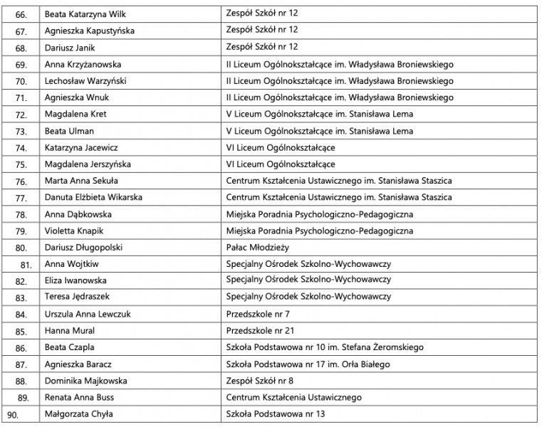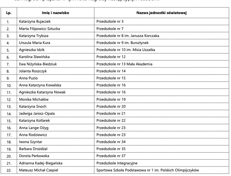 W tym roku komisja rozpatrzyła 113 wniosków, z których 90 zostało pozytywnie zaopiniowanych: 23 z przedszkoli, 31 ze szkół podstawowych i 36 ze szkół ponadpodstawowych. Każdy z laureatów otrzymał nagrodę finansową w wysokości 3,5 tysiąca złotych.