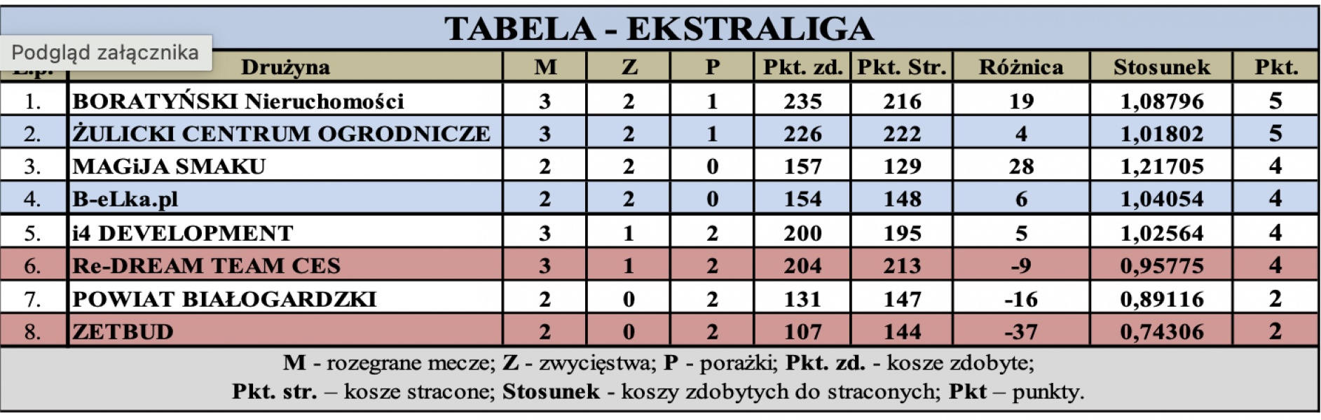 W Ekstralidze Żulicki Centrum Ogrodnicze pokonał 68-64 i4 Development po bardzo fajnym meczu, w którym decydowały niuanse. Jako że trochę więcej błędów popełnili Developerzy, to oni schodzili z parkietu pokonani. Re-Dream Team CES chciał sprawić psikusa mistrzom,