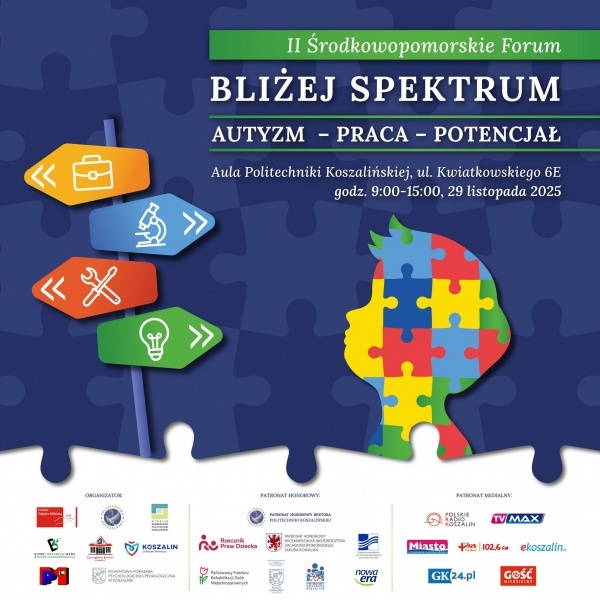 W kampusie Politechniki Koszalińskiej odbyła się konferencja prasowa zapowiadająca nadchodzące II Środkowopomorskie Forum „BLIŻEJ SPEKTRUM”. Spotkanie poświęcone było idei wydarzenia, które już niebawem zgromadzi specjalistów, nauczycieli, rodziców oraz wszystkich zainteresowanych tematyką autyzmu i neuroróżnorodności.